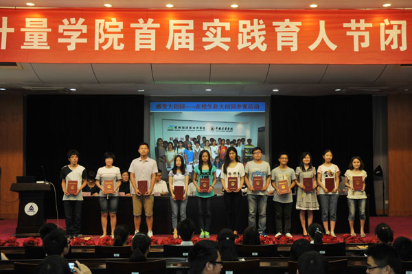 6月5日,中国计量学院首届实践育人节闭幕式暨颁奖仪式在闻厅二楼报告厅顺利举行。校党委书记胡建成,省教育厅宣教处处长薛晓飞,校党委副书记陶伟华,副校长宋明顺,及学生处、教务处、校团委、宣传部相关领导出席会议并为获奖学生颁奖。这次实践育人节,开创了国内首个以“梦想 实践 成长”为主题,以加强实践创新教学为宗旨的大规模系列活动,取得了一系列丰硕成果。