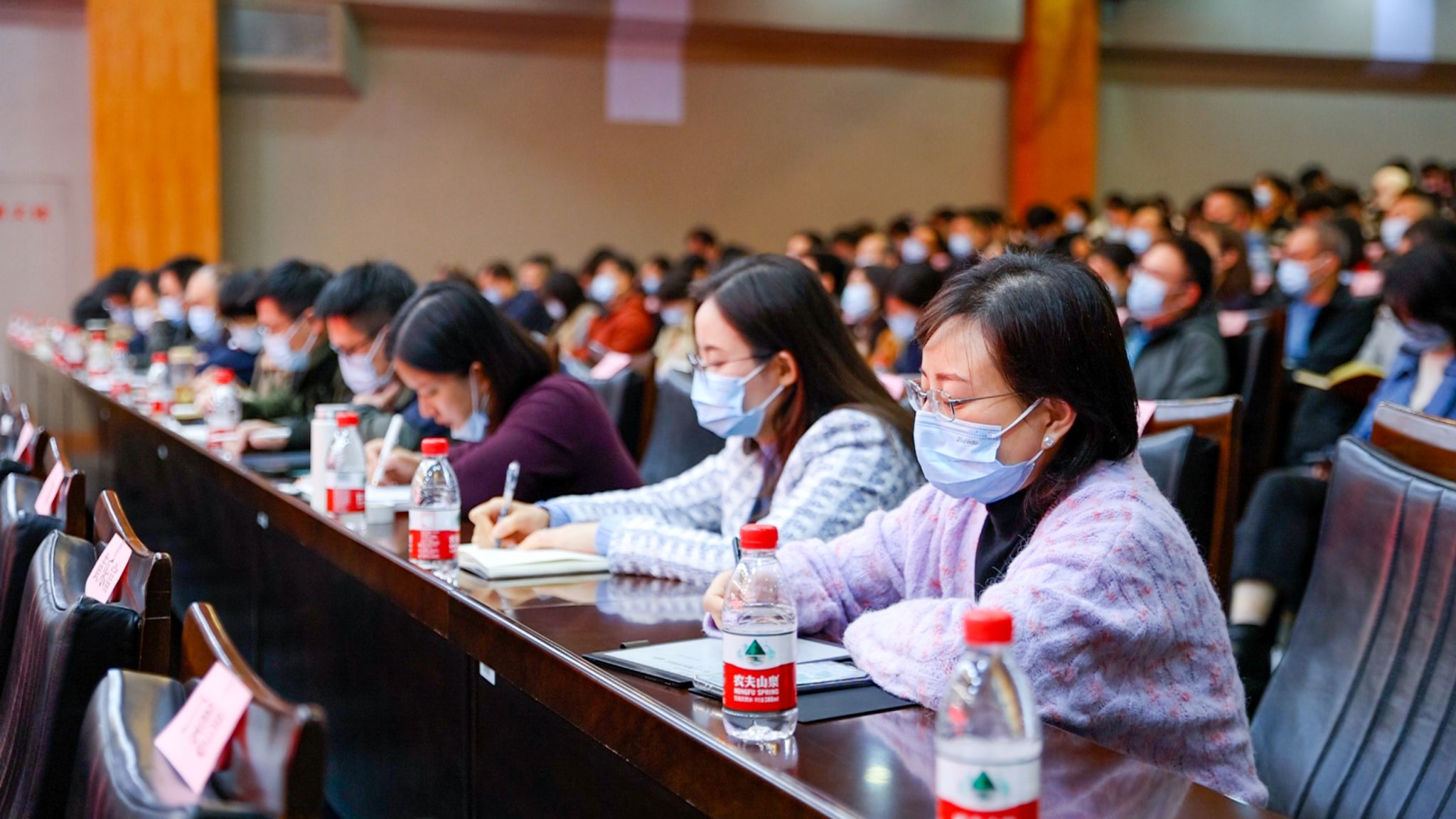 校党政领导班子成员,全体中层干部,师生代表认真聆听了报告。