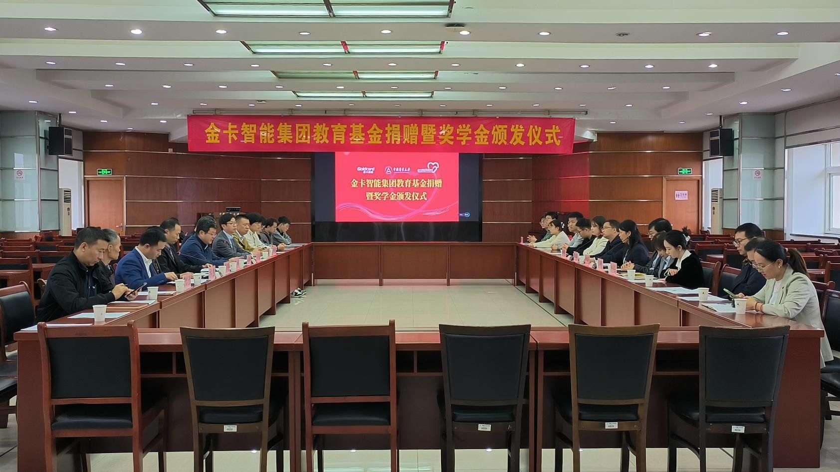 会上,金卡智能公益基金会向我校捐赠90万元用于支持学生成长发展。孔明宣读了金卡智能奖学金的获得者名单,他鼓励获奖同学再接再厉、再创佳绩,参会领导共同为获奖学生颁发证书。