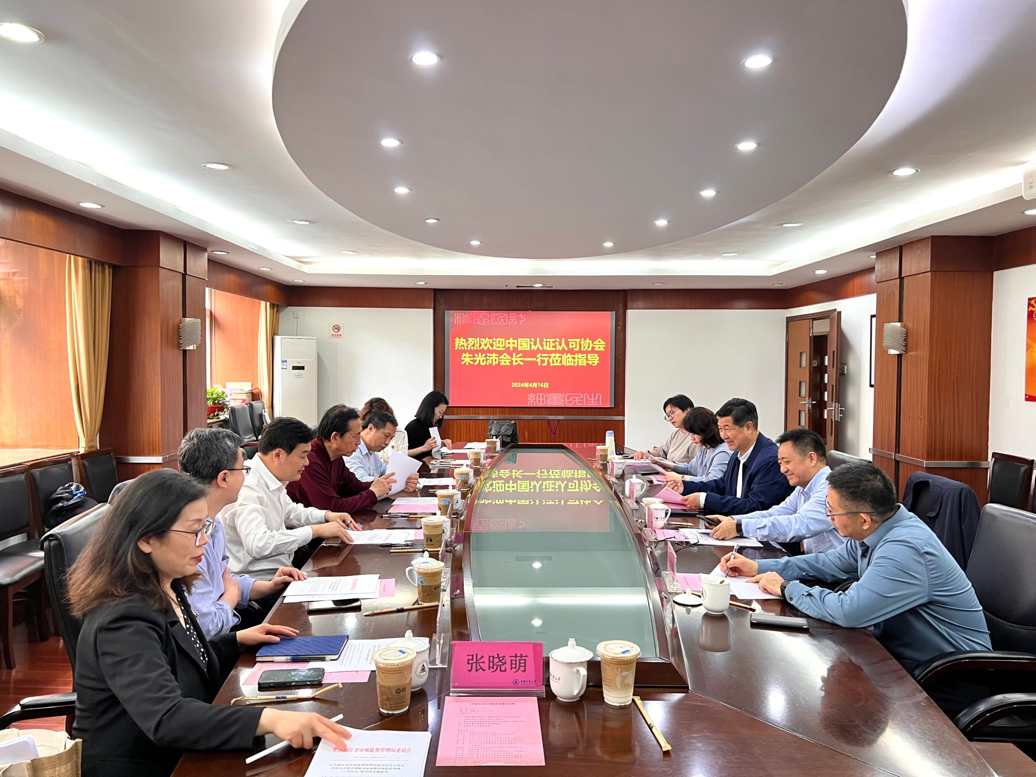 2024年4月16日,中国认证认可协会会长朱光沛、常务副会长兼秘书长黄继先、副秘书长郭京一行来校走访调研,浙江省市场监督管理局合格评定处处长郦东等陪同调研。校长徐江荣接待了协会一行。双方在加强行业人才联合培养、拓展会校合作等方面进行了深入交流。