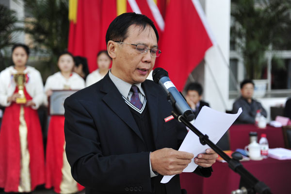 宋明顺为运动会致闭幕词。他指出,本届运动会发扬了“更高、更快、更强”的奥运精神,是一次热烈、精彩、成功的校园体育盛会。在两天的比赛中,运动员顽强拼搏,超越自我;裁判员尽职尽责,坚持标准;工作人员服务到位,保障质量;拉拉队员充满激情,加油呐喊声不可计量。在各方的努力下,整个比赛进程井然有序,紧凑而激烈,氛围是友谊的,成绩是喜人的。这不仅充分展现了我校师生拼搏向上、团结协作的良好精神风貌,而且广泛传递了友谊、团结、和谐的校园体育精神。这必将激励更多的量院师生参与体育、热爱体育、享受体育。宋明顺希望广大师生能够做到“我运动,我快乐”,尽情享受运动带给我们的无限乐趣;希望大家做好“我运动,我提高”,用健康的身心投入教学科研和学习;希望大家做实“每天锻炼一小时,健康工作五十年,幸福生活一辈子”,用运动和健康提高个人的生活幸福指数;希望大家把比赛中激发出来的顽强拼搏、团结协作、追求卓越的精神,带到学习、工作和生活中去,为学校创建特色鲜明、国内知名的教学研究型大学做出新的更大的贡献!