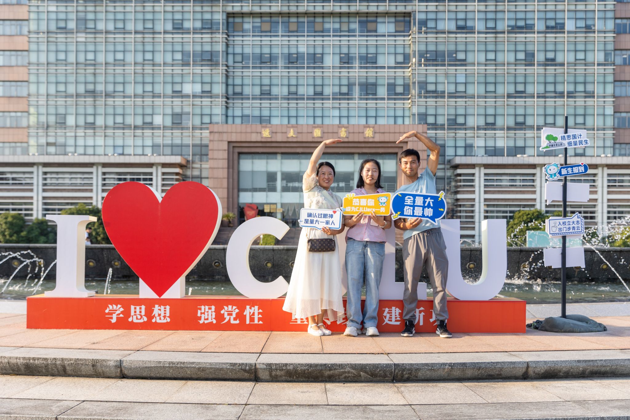 学校正大门、校名石、图书馆、博物馆、启明广场、陶冶亭、畅学园……今年,学校在多个校园文化景观处设置了各具特色的打卡点、合影手牌,完成打卡还能领取学校吉祥物“量量”玩偶、冰箱贴、徽章、钥匙扣等校园文创产品。