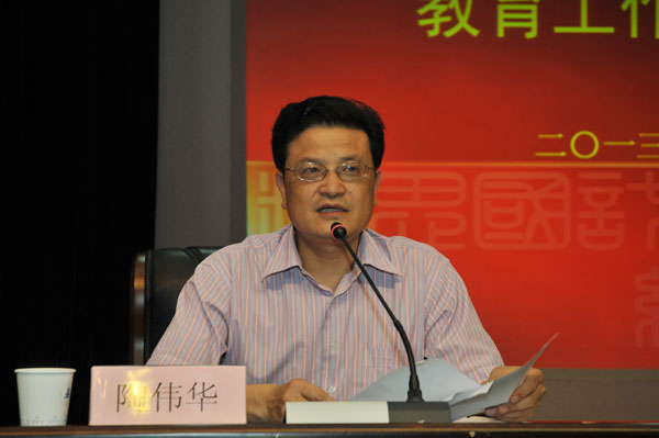 7月5日-6日,我校2013年大学生思想政治教育工作研讨会在闻厅二楼小报告厅召开。校党委书记胡建成,党委副书记陶伟华,学生工作领导小组成员,各二级学院党总支书记、副书记,马克思主义学院负责人,全体辅导员,党委学工部、党委宣传部、校团委全体人员参加了会议。会议由陶伟华主持。