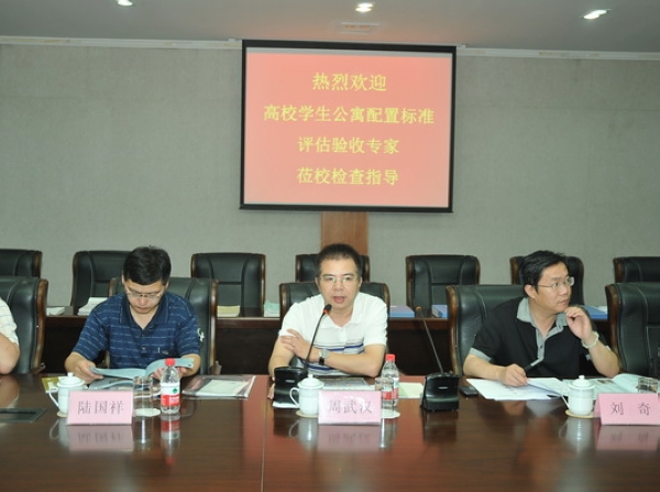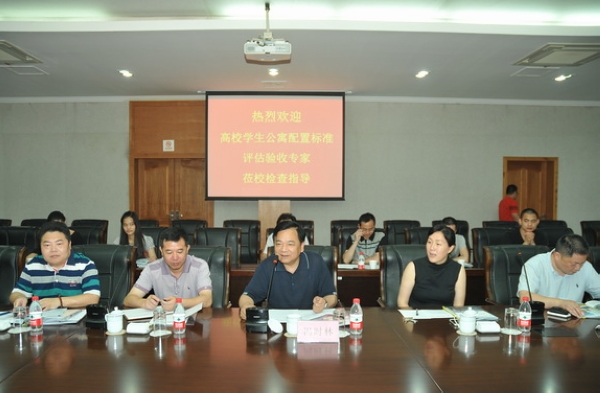 6月21日全省高校首场学生公寓标准化配置验收会在我校进行,省教育厅计财处副处长周武汉率评估验收专家组全体15人,对我校进行学生公寓配置标准化评估验收。副校长冯时林,及我校相关职能部门负责人参加了评估验收会。