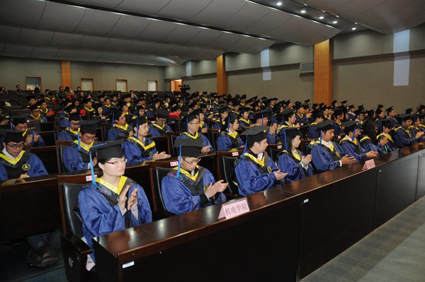 我校2003级研究生、杭州中恒派威电源有限公司CEO刘海浪作为校友代表发言。他回顾了自己的求职经历,送给在场的毕业生一个“赢”字,介绍了构成“赢”字的“亡、口、月、贝、凡”五个部分,告诫即将走入职场的毕业生们要有危机意识和使命感;要努力锻炼口才和提高沟通能力;要懂得成大事者需要时间检验和阅历积淀;要善于有效运用信息和资源;要学会用平凡心对待成功。