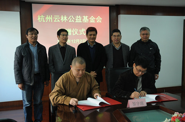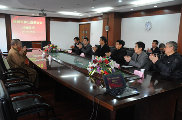 杭州云林公益基金会由千年古刹灵隐寺发起,于2014年3月3日在杭州市民政局登记设立。以赈灾济困、教育和文化事业资助等公益活动为业务范围。在本次捐赠仪式上,杭州云林公益基金会承诺向我校捐赠人民币壹佰伍拾万元(连续5年,每年30万),设立云林教育基金,支持我校开展传统文化研究。