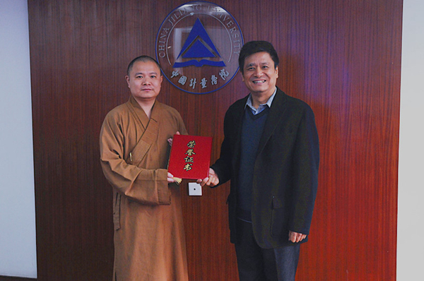 党委书记胡建成首先代表学校对杭州云林公益基金会捐资办学的善意、善心、善举表示衷心的感谢;对云林基金支持教育、弘扬传统文化的善举表示崇高的敬意。胡书记向来宾简要介绍了学校近些年来的良好发展势头,尤其是在人才培养和中国传统文化研究方面获得了社会的广泛认可。他指出,云林基金的捐赠善举充分体现了其对传统文化的引领、对高等教育的支持和人才培养的重视,相信经过双方的共同努力,必将进一步推动中国传统文化的传承和弘扬,进一步提升相关人才培养的质量,希望社会各界继续关心和支持中国计量学院的发展。最后,他再次对云林公益基金的无私资助表示感谢,并为其颁发捐赠证书。