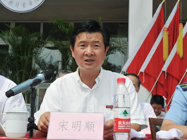副校长宋明顺作军训总结报告。他首先代表学校,向关心和支持我校军训工作的空28师首长和全体教官表示衷心感谢,向顺利完成军训任务的2012级同学表示热烈祝贺!宋明顺指出, 14天的军训生活,同学们出色地完成了各种军训项目,掌握了各项基本军事技能,培养了艰苦奋斗、勇敢顽强的优良作风,磨砺了百折不挠的意志品质。他强调,这次军训的成功进行,有赖于空军28师和学校各级部门的紧密合作、精心部署,有赖于教官们科学施训、严格管理,有赖于同学们的艰苦奋斗、顽强拼搏。最后,他叮嘱同学们,紧张而短暂的军训生活即将结束,但坚忍不拔、吃苦耐劳、团结协作的计量青年精神,却需要我们持之以恒地坚持和锻炼。