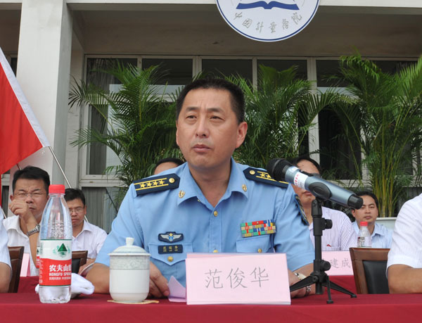 空军28师首长范俊华在会上讲话。他指出,量院学子在此次军训中展现出了顽强的意志、过硬的作风、严明的纪律和强烈的荣誉感、责任感,军训的收获是年轻学子未来人生旅途中取之不尽、用之不竭的宝贵财富。相信同学们在经历过这种刻骨铭心的磨练之后,会以更饱满的信心去面对今后的学习生活,以更坚强的毅力去接受风雨的挑战。他希望量院学子树立远大理想、刻苦学习,强化国防观念,时刻准备好为巩固国防贡献自己的青春和力量。