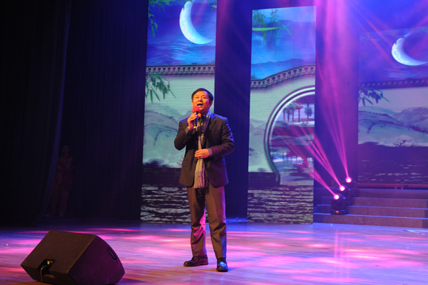 “祝愿中国计量学院的师生员工在新的一年里更加健康、更加顺意、更加快乐、更加幸福!”当晚,林建忠校长与观众们分享了他2014年的“五个最”——“最开心的事、最欢心的事、最遂心的事、最揪心的事、最诚心的事”。他还别出心裁地创作了五个以网络流行语为谜底、唐诗宋词为谜面的灯谜:“我歌月徘徊,我舞影凌乱”的谜底是“也是醉了”;“天生我才必有用,千金散尽还复来”的是“有钱任性”……令人捧腹。他带来的一曲《弯弯的月亮》,旋律婉转,歌声悠扬。