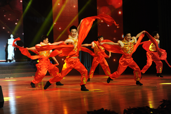 开场舞《开门红》舞得精彩,《舞动中国》铿锵有力,《欢乐一家人》妙趣新颖,《青春踏歌》青春昂扬,《对面的女孩看过来》、《匆匆那年》让人回想起青葱岁月,退休老师们的柔力球表演《小苹果》活力不减,《唱响中国》、《记忆有量》或大气磅礴或清新有趣,《爱•莲》动静皆宜、《中国太极》柔中带刚,《我骄傲 我是中国人》童音稚嫩却清脆飞扬。晚会中,歌声袅袅,唱出丰收的喜悦;舞姿翩跹,带出幸福与希望。《辞旧迎新贺新年》里,每个二级学院都送上了一副喜气洋洋的对联,拼创意赛心意,一番新春热闹景象。