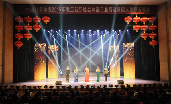 “徜徉天问,在极深研几之间畅想中国梦;传道环宇,在授业解惑之间实践中国行;守望家园,在默默奉献之间传递中国爱。”1月9日晚,2015年“计量感动,度量幸福”教工迎新晚会在嘉量大会堂隆重举行。晚会以“畅想中国,梦筑计量”为主题。学校党政领导与千余名教工及家属欢聚一堂,共迎新年。
