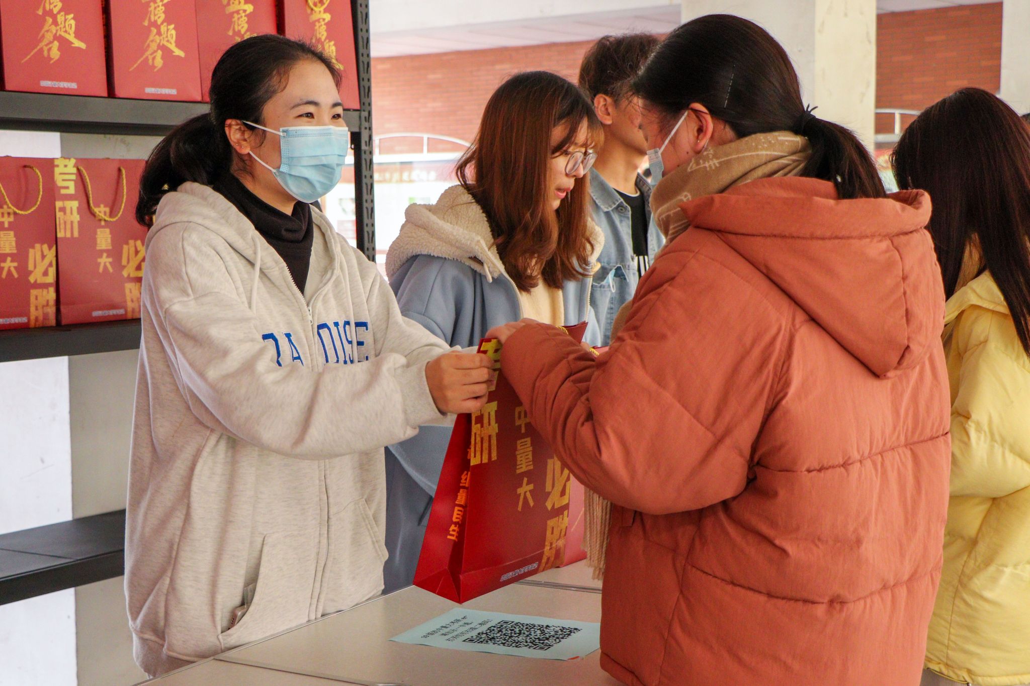 “如何更好地关心关爱考研学子,是学校一直放在心上的事。今年,我们不仅精选了5样寓意美好的慰问品,还让‘量量’给大家送上温暖的拥抱,在考研的冲刺阶段,希望同学们能放松心情,坚持到最后。”学工部部长杨娜说。