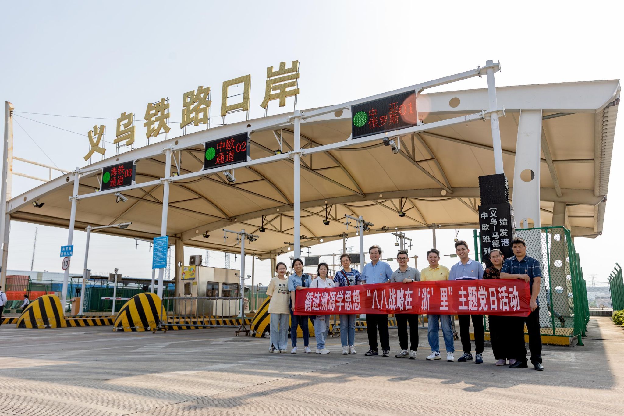 义乌铁路口岸是习近平总书记曾六次点赞的“义新欧”中欧班列的“始发地”。在义乌铁路口岸“义新欧”党群服务中心,程刚和支部党员认真听取了“义新欧”中欧班列、义甬舟开放大通道建设运行和义乌国际贸易综合配套改革试验区打造情况讲解,直观感受义乌在习近平总书记的指导下助力“一带一路”倡议、助推国内国际双循环中主动作为、扛旗争先的奋进状态。