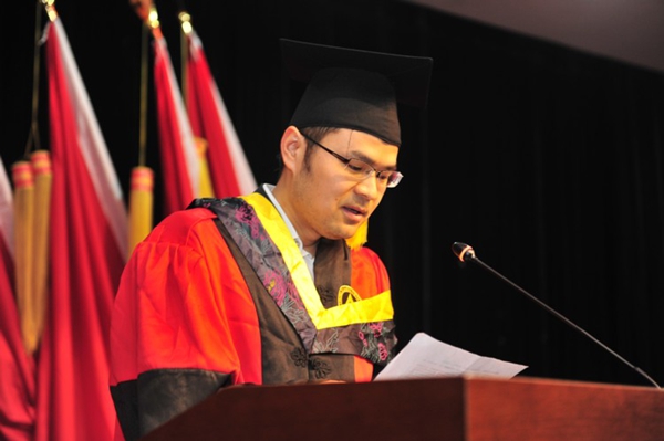 质安学院王强老师作为导师代表发言。他向获得硕士学位的研究生表达祝愿,希望他们常怀感恩之心,勇于承担社会责任,不断学习,开拓创新,为社会做贡献,为母校争光。