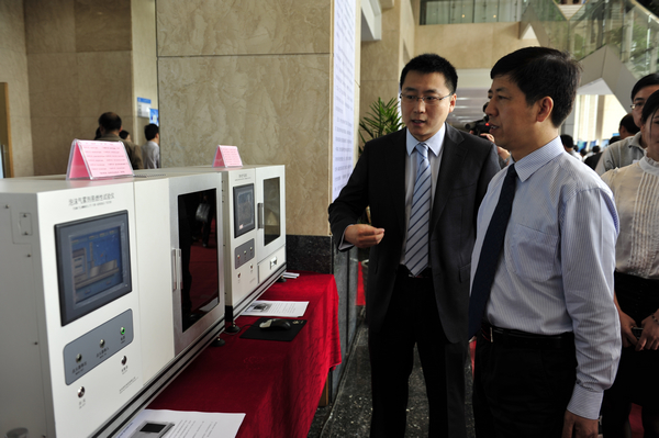 夏省长还参观了省内高校科研成果展。在我校的科研成果展位前,夏宝龙省长视察了计测学院叶树亮教授的“化学危险品试验仪”、生命学院张明洲教授的“食品安全免疫快速检测技术及产品”、信息学院陈光平副教授的“DSIS-W700高清网络播放机”、材料学院的“新型磁性材料”等成果实物,听取了我校参展人员的讲解,并观看了相关演示,对我校科研成果转化给予了充分肯定。