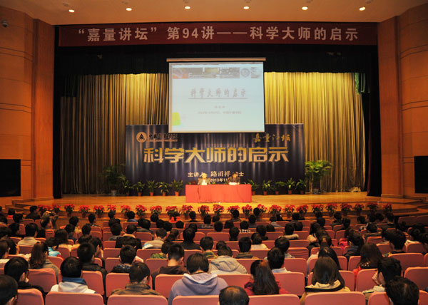 “大师们走上科学道路都是由于对科学的兴趣和热爱,而不是为了追逐名誉和地位。”路甬祥院士指出,对科学的兴趣和热爱、淡泊名利、不怕失败、执着探索,是他们走上科学道路并取得重大成就的重要原因。他通过居里夫人对研究放射性物质极大的兴趣最终获得诺贝尔奖的例子,使听众对此有更深刻的理解。