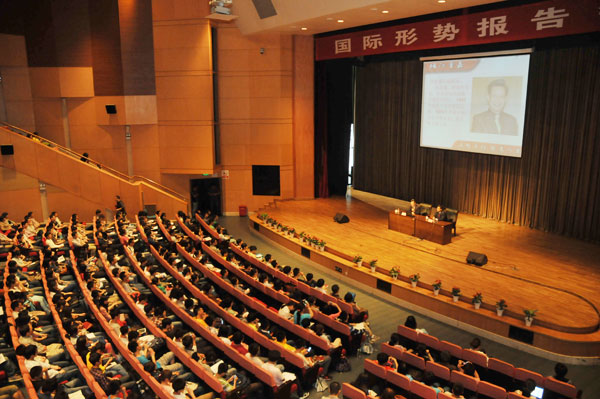 5月16日下午,嘉量大会堂,联合国原副秘书长、著名外交家沙祖康大使应邀做客我校嘉量讲坛,妙论当前国际形势,为我校师生带来了一场精彩的报告。中国常驻联合国日内瓦办事处和瑞士其他国际组织代表团公使衔参赞、沙祖康夫人刘谨凤女士出席报告会。报告会由校党委书记胡建成主持。