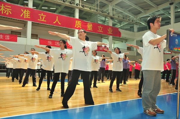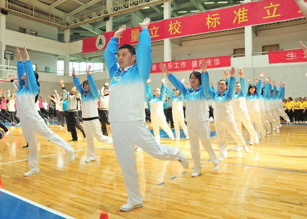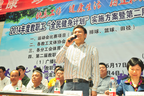 为推动我校教职工全民健身运动的广泛开展,增强广大教职工积极锻炼身体、以运动促健康的意识,5月7日下午1:30,我校2014年度教职工“全民健身计划”暨第二届教职工“健身月”活动启动仪式在天健体育馆隆重举行。校党委书记胡建成出席启动仪式并宣布活动正式启动。组委会成员以及来自全校22个分工会的500多名教职工代表参加了启动仪式。启动仪式由校工会主席高岭梅主持。