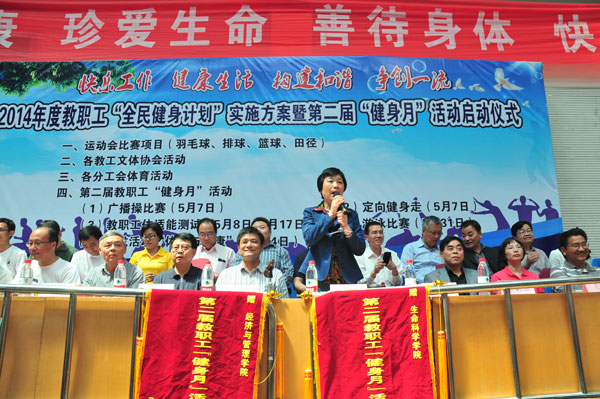 高岭梅在启动仪式上对《中国计量学院2014年度教职工全民健身计划实施方案》进行了介绍。