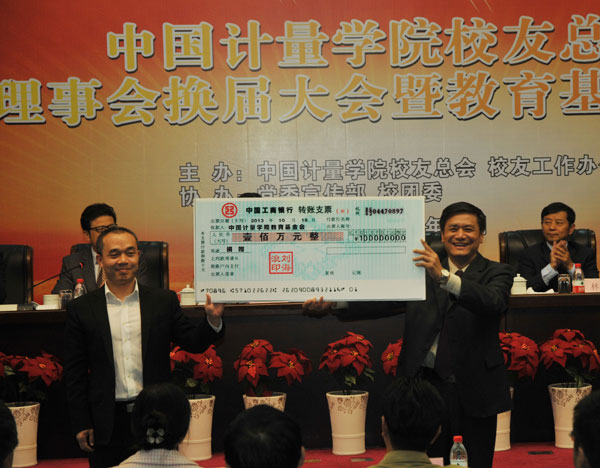 教育基金会受到了热心校友和社会人士的大力支持:99试点班、03级研究生刘海浪发起并募集资金100万元,设立星源研究生助学金;浙江安工机械有限公司总经理王祥以99管2班名义向学校捐赠100万元;浙江联城消防检测有限公司捐赠20万元;杭州联建管理有限公司捐赠10万元。大会现场举行了捐赠仪式,基金会法人代表、校党委书记胡建成接收了捐赠,并为捐赠个人和单位颁发了证书。