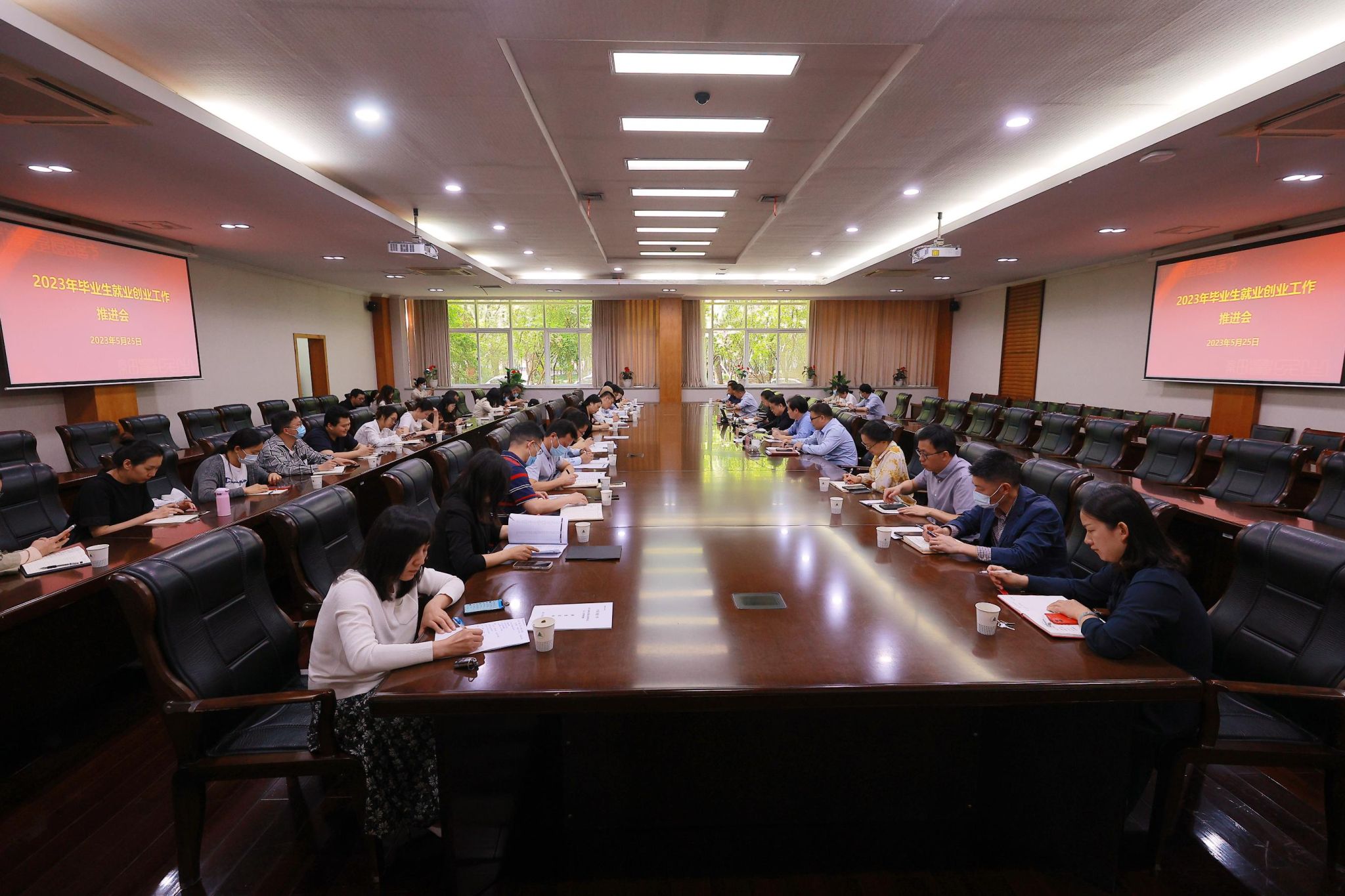 为落实党中央、国务院关于促进高校毕业生就业工作决策部署,扎实推进我校就业创业工作,确保2023年毕业生就业大局稳定,5月25日上午,学校在闻厅一楼会议室召开2023年毕业生就业创业工作推进会。校长徐江荣,校党委副书记程刚,学生处、研究生院负责人,各学院就业工作主要负责人、学生工作书记、2023届就业辅导员参加会议,会议由程刚主持。