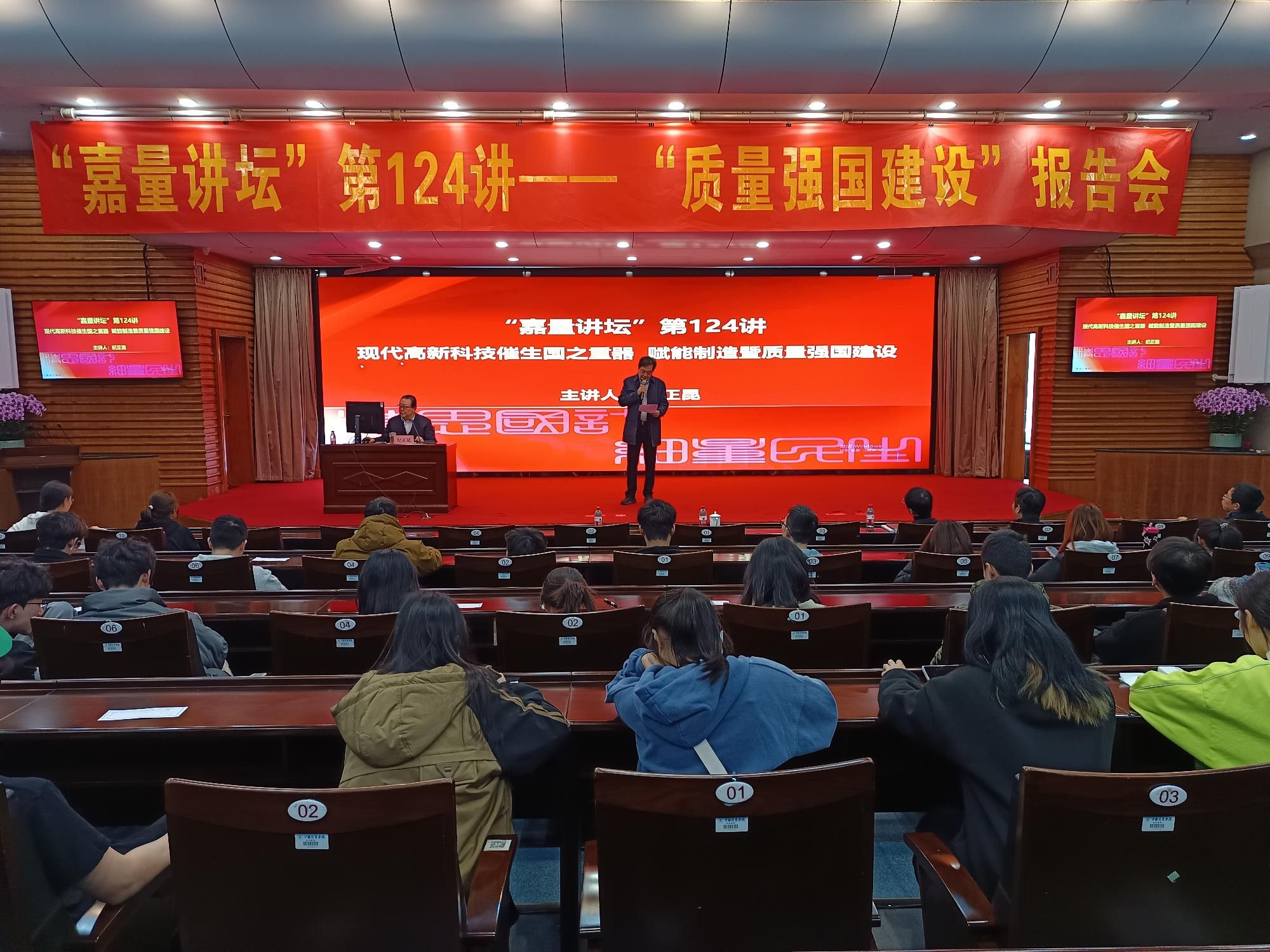 3月13日下午,国家制造强国战略建设咨询委员会委员、国家标准化战略实施专家咨询委员会执行主任委员、中国标准化专家委员会委员纪正昆教授做客我校“嘉量讲坛”,作题为《现代高新科技催生国之重器赋能制造暨质量强国建设》的专题报告。报告会由校党委副书记程刚主持,两百多名师生在闻厅二楼报告厅聆听了报告。