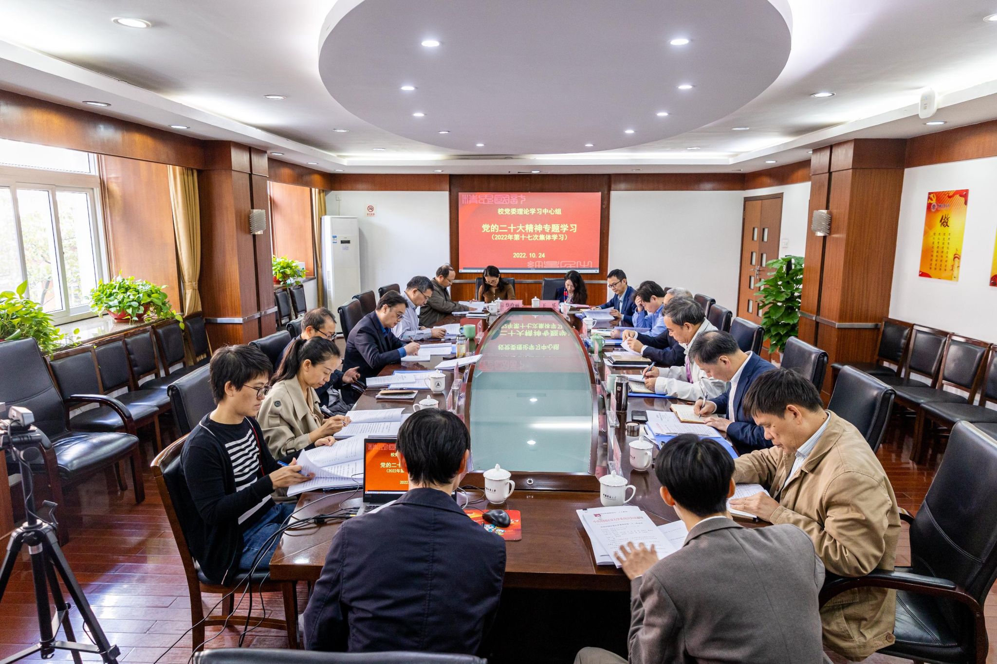 10月24日,中国计量大学党委理论学习中心组举行集体学习会,专题学习党的二十大精神,传达全省领导干部会议精神,对学校学习宣传贯彻党的二十大精神进行部署。校党委书记张土乔主持会议并作主题发言,校党政领导班子成员参加会议。