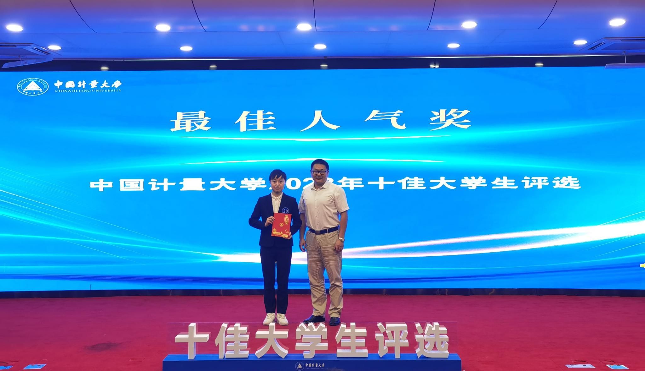 经个人申请、学院推荐和学校审核,共有20位候选人进入现场展示环节。 奋斗是青春最靓丽的底色,候选人根据抽签顺序从思想道德、学业科研、科技创新、社会实践、志愿服务、社会工作等方面讲述了自己为理想奋斗的成长历程与青春故事。最终,经现场评委评分,机电工程学院李育婵、林敏,计量测试工程学院曲巧枫,信息工程学院陈春春,光学与电子科技学院李佳慧、苏泽文,经济与管理学院张金燕,理学院毛景阳,艺术与传播学院唐楠和量新学院姚竞等7名本科生、3名研究生荣获中国计量大学2023年“十佳大学生”称号。机电工程学院林敏获得“最佳人气奖”。