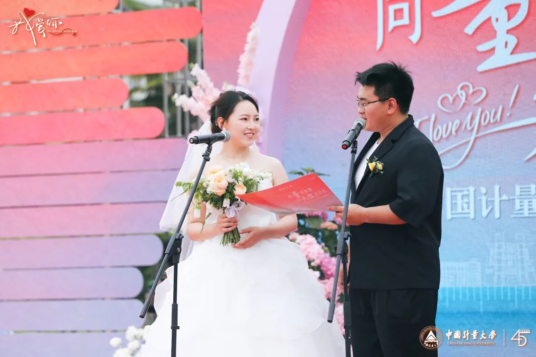 “仪式感拉满!”“是值得珍藏一辈子的记忆!”“对你的喜欢,一个嘉量装不下。”新人们收获了满满的幸福与感动。据悉,中国计量大学第二届校友集体婚礼是学校2023年计量文化节系列活动之一,也是45周年校庆系列活动的重要内容。接下来,学校还将开展院士报告、嘉量讲坛、高端峰会、全国学术研讨会等30余项活动,推动计量文化的保护传承、创新发展、教育普及。