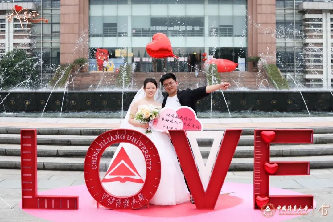 浪漫的签到台、爱的誓言指引牌、主题摄影点……校园里处处洋溢着幸福的味道。三处主题摄影点前,围满了打卡拍照的校友夫妻。胡来钢和张媛媛大一时相识于兴趣社团,已经并肩走过了6个年头,母校见证了他们的相知相惜和共同成长。毕业后,他们常常会抽时间一起回到母校,走一走图书馆后的林荫路,看一看曾经一起备考的图书馆自习室,绕一绕环宇楼的环型楼梯,见一见曾经给过他们帮助的恩师。“不论以后将身在何处,想起母校心里总有一份温暖的感动。”如今而立之年的他们,分别考取了浙江大学和暨南大学的博士研究生,将同时开启深造的旅程,继续携手并进!