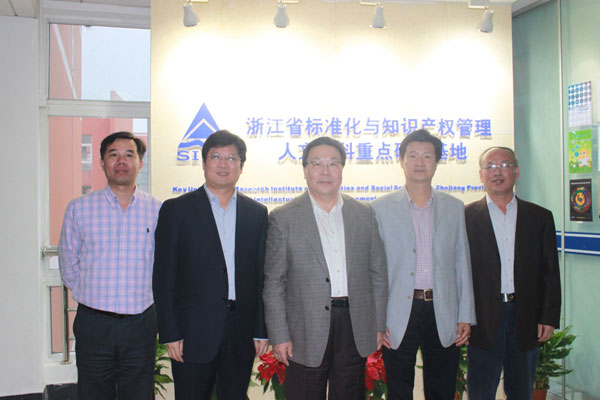 纪正昆理事长一行在校领导的陪同下考察了浙江省标准化与知识产权管理人文社科重点研究基地,参观了人文基地成果宣传展示区、成果陈列室,并观看了人文基地建设宣传片,详细了解了人文基地四年建设期中在人才队伍、科学研究、学术交流、社会服务等方面的建设成果。纪正昆对人文基地在四年中所取得的丰硕成果表示了祝贺,并与人文基地相关教师、研究生进行了简短座谈。