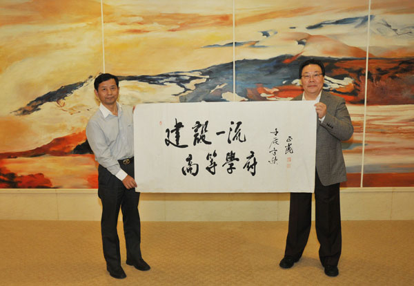 2012年10月24日,原国家标准化管理委员会主任,现任中国标准化协会理事长纪正昆一行莅临我校指导工作。校长林建忠、党委副书记徐涌金、副校长宋明顺在闻厅与纪正昆一行进行了亲切座谈。林建忠校长向纪正昆介绍了近年来学校的改革发展情况。纪正昆对学校这几年的发展表示十分赞赏。作为曾任学校党委书记的老计量人,他坦言:“回到学校,心里有热的感觉,像回到家一样!”并欣然挥毫题词“建设一流高等学府”,表达了对学校未来发展的期许。