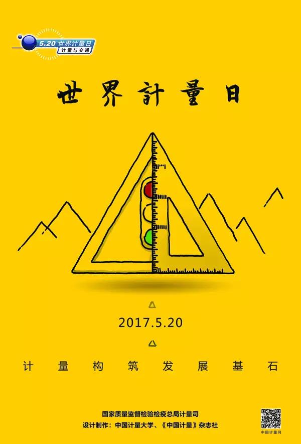 2017年世界计量日的主题是“计量与交通”。两幅主题海报利用三角形和圆两个经典图形巧妙搭起了“计量”与“交通”之间的桥梁。1号作品以传统的日晷和现代化的车轮相结合,2号以随处可见的红绿灯和三角尺组合,三角形配合“计量构成发展的基石”,圆辅以“计量推动社会进步”的句子,一静一动,表达了计量丰富的内涵。