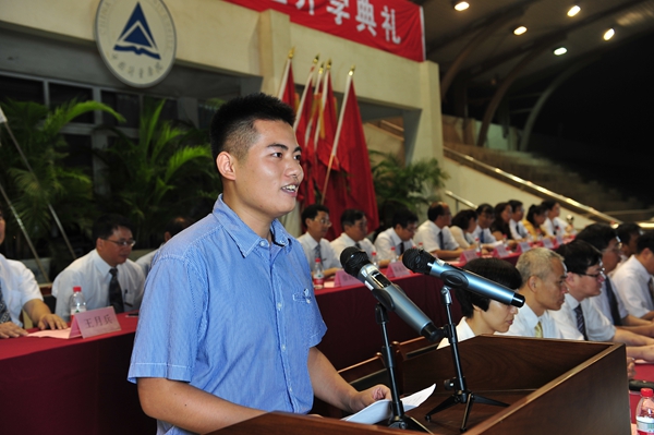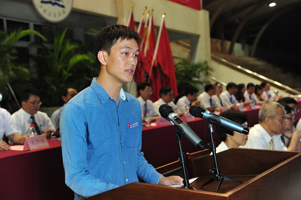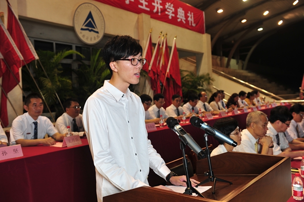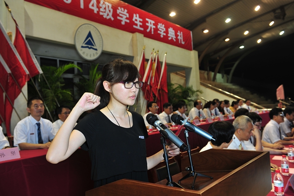老生代表、校学生会主席邵丁,2014级研究生新生代表、机电工程学院钱璐帅分别上台表达了对学校的感恩与祝愿,分享了他们的成长经验与大学体会。新生代表、量新学院裘望满怀对大学生活的憧憬与渴望,用充满激情和斗志的青春宣言,与新生一起朝着梦想和希望前进。