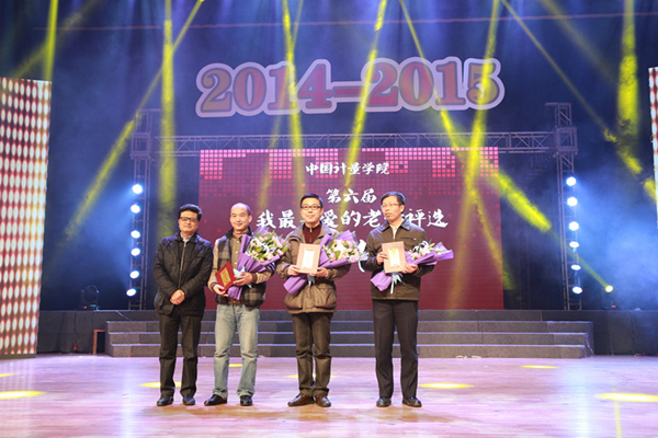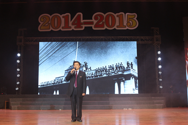晚会在“与我们共迎2015”的校园内外大事集锦视频中拉开帷幕。大学生艺术团舞蹈团的开场舞《开门红》完美结合了民族与现代舞蹈元素,带着浓浓喜悦,一开场就给晚会增添了一笔迎接新年的喜庆氛围;紧接着是校十佳歌手大赛十六强选手的集体亮相,在歌曲《我要飞》的音乐里他们或唱或跳充分展示了青年学子积极向上的青春活力。晚会的第一个高潮是校第七届“我最喜爱的老师”颁奖仪式,与会校领导先后为到场的获奖老师代表颁奖,学生代表则为老师献上代表学生们最高敬意的鲜花。