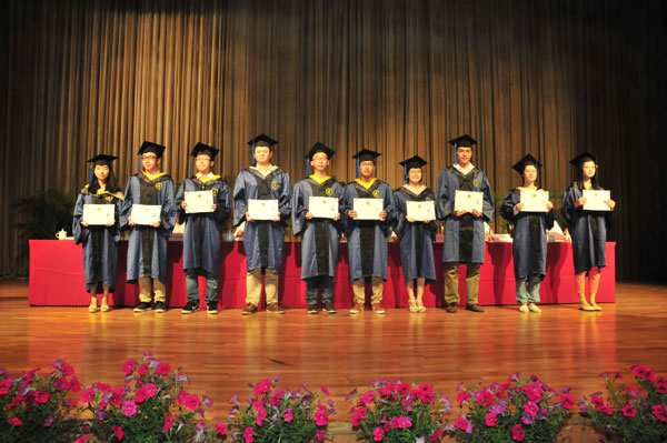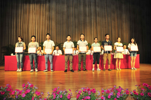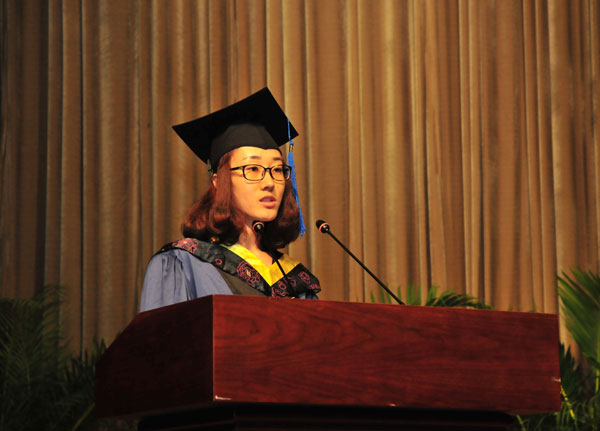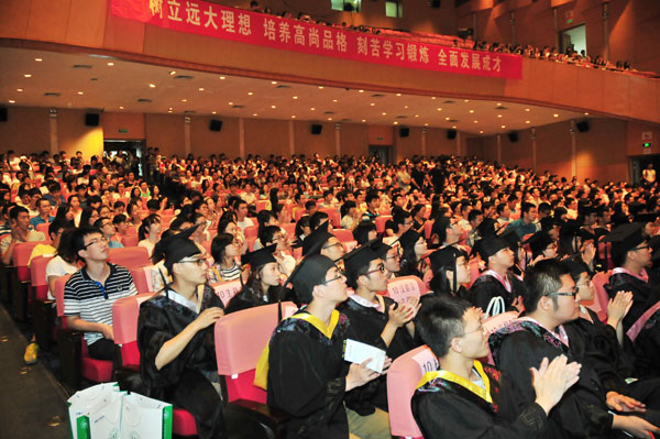 副校长宋明顺宣读了省级、校级优秀毕业生,校第二届吉尼斯之星表彰文件,随后进行了研究生学位证书、学士学位和本科毕业证书颁发仪式。省级优秀毕业生代表、校级优秀毕业生代表及校第二届“吉尼斯之星”代表上台领取了证书。