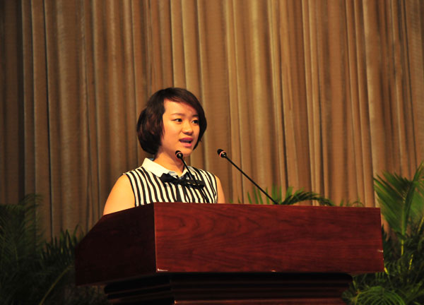 浙江省科技进步二等奖获得者、标准化学院张朋越教授作为教师代表发言,希望毕业生为人诚信,为学持之以恒,并告诫同学们“要懂得感恩,这是大智慧,会感恩的人,才是最快乐,最富有的人。”计量测试工程学院的研究生代表施岩讲述了自己在研究生三年中学术水平的提高,思想心智的蜕变,并感谢老师孜孜不倦的教诲与帮助。本科生代表人文社科学院王梓与大家共同分享了大学四年的成长经历,并用自己的经历告诉大家要有梦想,勇于追梦,具有圆梦的决心与勇气,最后祝愿母校在建设特色鲜明、国内知名的教学研究型大学的道路上攻坚克难,一路前行。代表校吉尼斯之星讲话的“创业规划之星”艺术与传播学院杨璐楠为大家讲述了自己从门外汉到取得工业设计一等奖的经历,与同学们分享了自己创业成功的经验,并告诉同学们创业不应停留在蓝图的设计上,要具有敏锐的眼光与实干的精神。