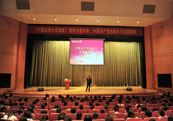 为进一步提高思政理论课教学效果,马克思主义学院思政理论课继“机考”改革后,进一步推行“专题+案例+讨论”教学方式改革。4月16日下午,校党委书记,原嘉兴学院教育部重点研究基地负责人胡建成教授应马克思主义学院邀请为《中国近现代史纲要》课程进行第三个专题——“中国共产党的诞生与红船精神”的专题教学,我校12、13级1200余名学生和《中国近现代史纲要》课程全体老师参加了本次教学活动。本次教学活动由马克思主义学院党总支书记陈剑波主持。