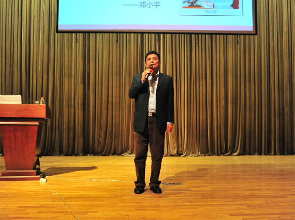 本次专题授课,是马克思主义学院推行思政理论课“专题+案例+讨论”教学方式改革的试点,此项改革首先在《中国近现代史纲要》课程进行。所谓“专题+案例+讨论”教学方式即依据教材,结合社会“热点”、“焦点”及学生思想“兴奋点”每门课程按照学时设置6-9个专题,每个专题有1-2个案例,专题讲授完毕后安排1次讨论课。每门课程安排1-2个专题聘请校内外专家、学者,或具有实践经验的英雄、模范等各界人士,按照“分类集中”原则进行教学。即每一专题按照理、工、文三类学生,分三次集中教学。所在班级的任课教师跟随听课,并组织学生与聘请专家进行互动,专家集中授课结束后,各班级任课教师利用下次课在所在班级组织讨论。该教学方式的改革,能够有效地整合校内外优质资源,丰富思政理论课的教学内容和提升课程的教学质量,有助于进一步提高思政理论课教学的针对性和实效性。