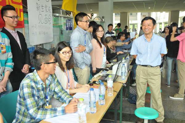 校领导还深入学生宿舍,看望2013级新生。每到一处,校领导都与新生及家长亲切交谈,详细询问新生学习和生活情况,并勉励新生来到大学后要尽快转变角色,适应大学生活,提高自身能力,并预祝他们愉快地度过大学生活。