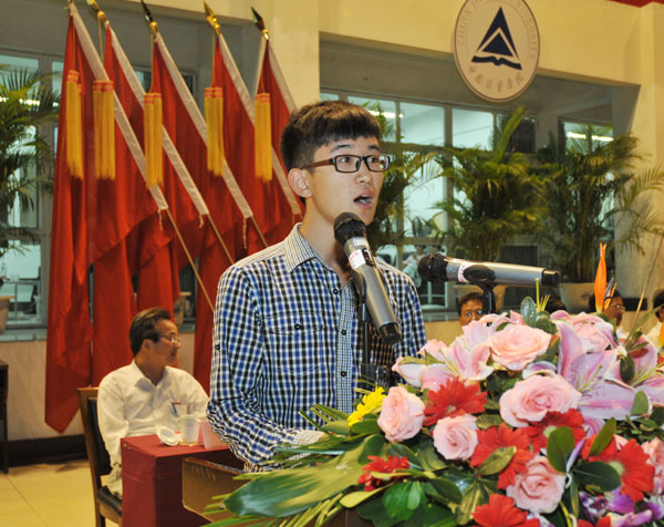 老生代表、校学生会主席侯婉莹,2012级研究生新生代表卢宇晨,2012级本科新生代表来自量新学院的杨春浩,2012级留学生代表来自德国的安娜贝尔分别发言。他们共同表达了新生努力学习、成长成才的愿望,祝愿全体新生在量院的校园里书写出无悔的大学篇章。