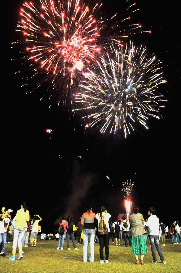 开学典礼结束后观看礼花