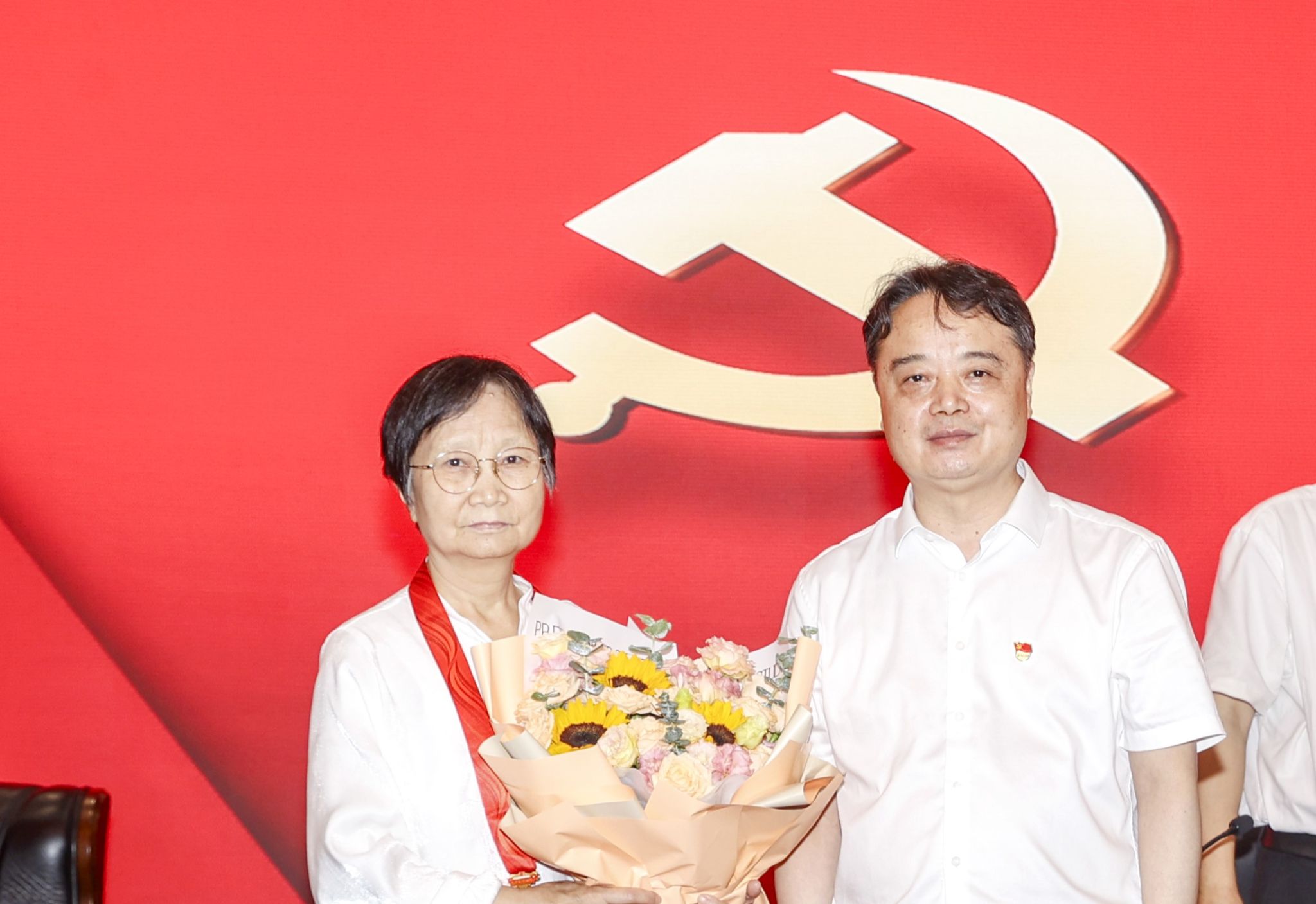 会议对2023年以来党建工作全国、省级荣誉获得者,校“三优一先”组织、个人,校“学习强国”学习先进集体、学习标兵等进行表彰,学校领导依次为受表彰的先进集体和先进个人代表颁奖。校长、校党委副书记徐江荣为“光荣在党50年”纪念章获得者代表佩戴纪念章并献花致敬。