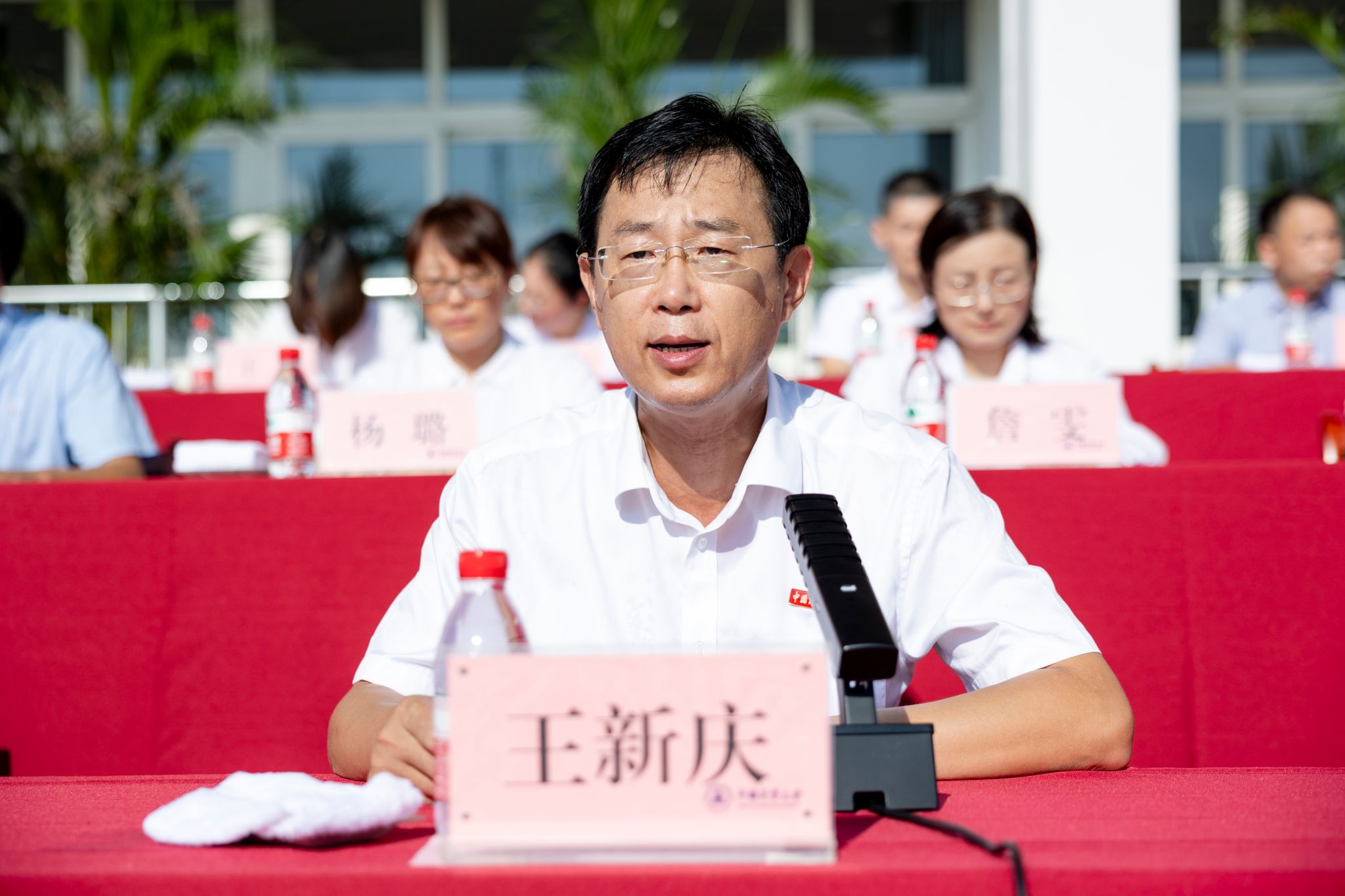 王新庆作动员讲话,代表学校向承训部队的到来表示感谢,向参加军训工作的2024级同学和全体教职工们表示问候。他指出,军训是磨砺意志、锤炼品格、改进作风的重要途径,是同学们大学生涯的第一课,也是最有意义的课程之一。他强调,要保质保量完成军训任务,军训是同学们接受国防教育的重要形式,是大家成为新时代社会主义建设者和接班人的必要磨砺;要牢记新时代强国梦,在军训中砥砺自身、成就自我,牢固树立“爱国爱军”的国防概念、“敢打敢拼”的吃苦精神,为实现中华民族伟大复兴的中国梦贡献青春和智慧;要筑牢军训安全防线,希望教官们坚守高标准、严要求,文明科学施训,希望全体参与军训的老师们与教官们紧密合作,确保学生们在军训中健康成长,全面发展。他希望全体参训学生以奋斗的品质、坚韧的毅力,平安、顺利、圆满地完成军训任务,用汗水书写无悔青春,用行动编制伟大中国梦。