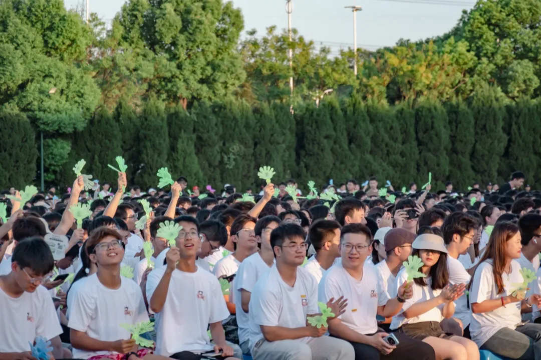 身着不同颜色服装的2024级新生们陆续落座,红白相间组成“ I♥CJLU”的图案,深切展示了莘莘学子对量大最真挚的告白,透映在直播屏幕上,现场格外震撼。
