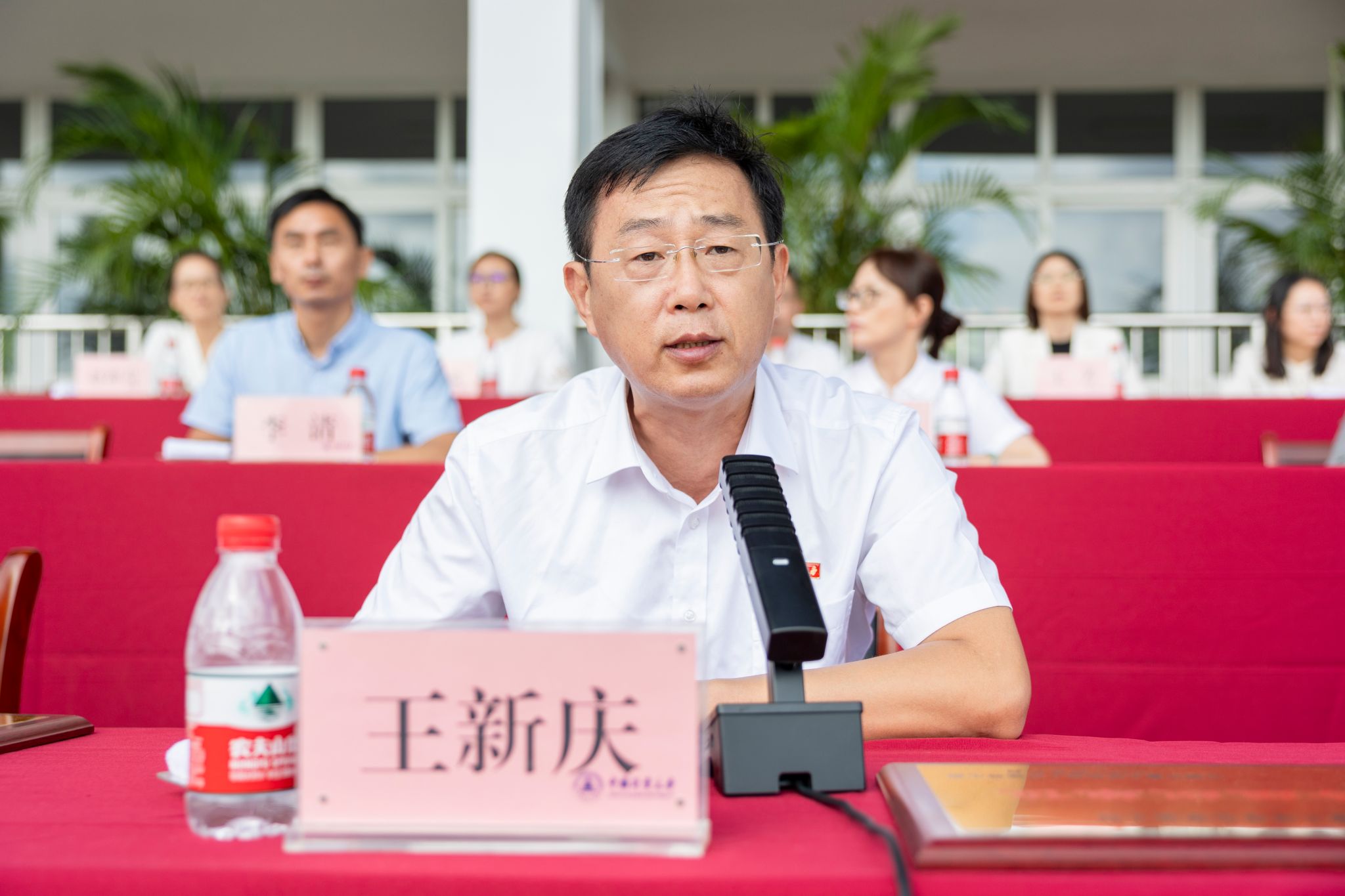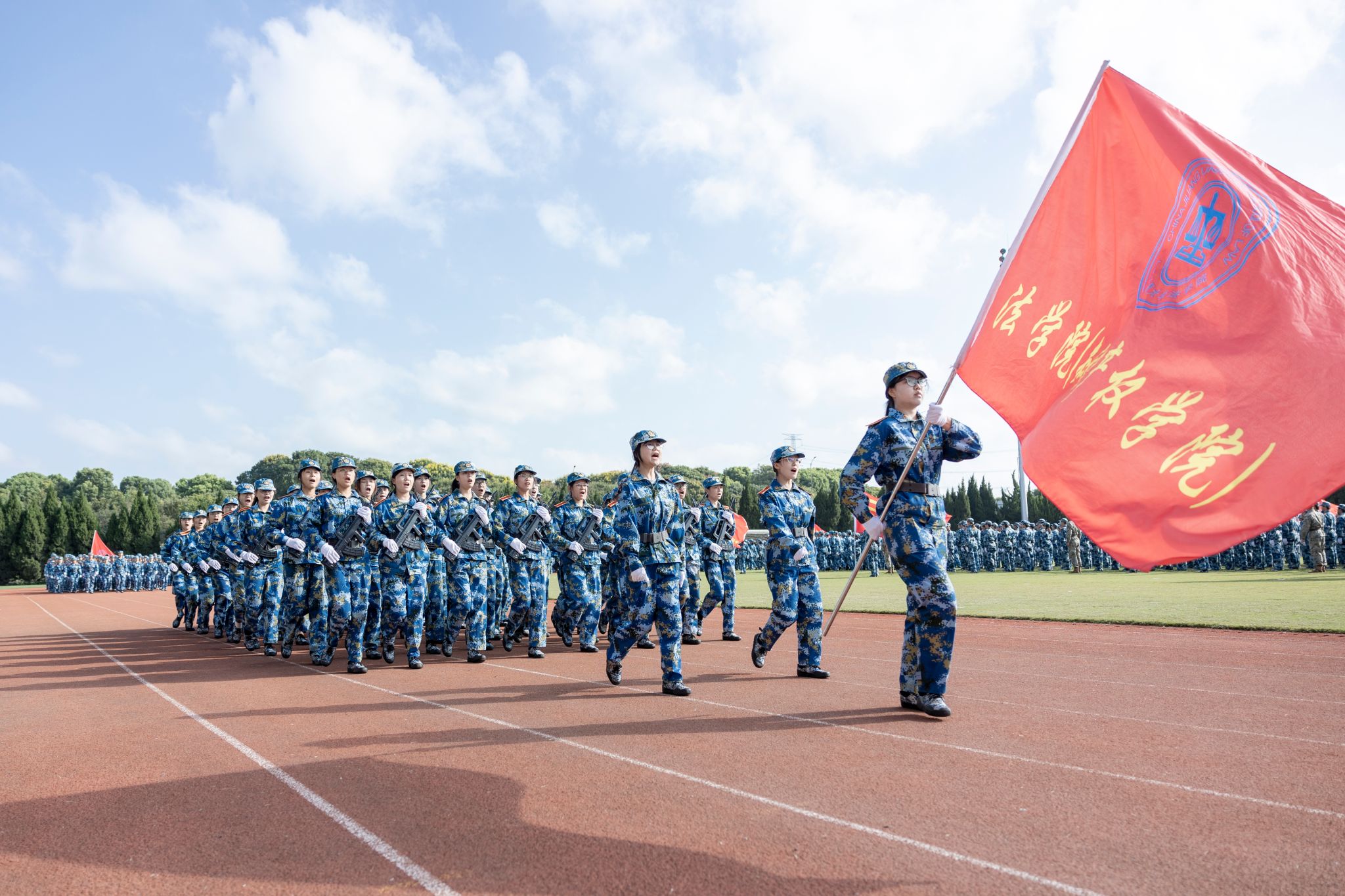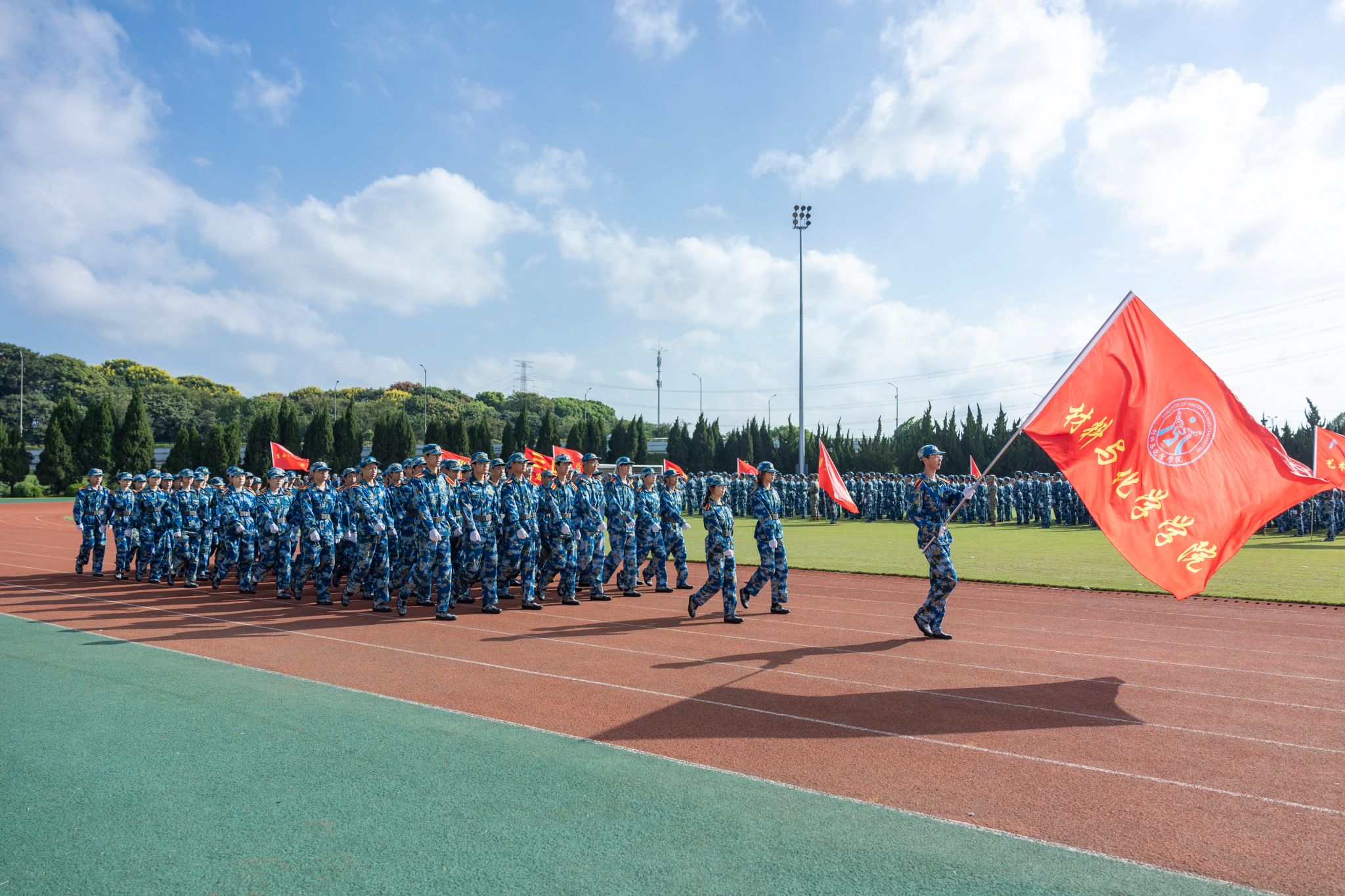王新庆作军训总结讲话。他表示,在军训生活中,同学们发扬艰苦奋斗、顽强拼搏的精神,经受住了烈日和高温、台风和雨水的考验。在训练中强健体魄,在磨砺中突破自我,完成了各项军训科目,掌握了基本军事技能,增强了组织纪律性,巩固了国防观念和集体主义观念,培养了吃苦耐劳、坚持不懈的品质,形成了团结协作、顾全大局的优良作风。他希望同学们要积极向上,健康生活。保持健康的生活方式,让优秀成为一种习惯。要勤学笃行,求是创新。努力掌握科学文化知识和专业技能,以脚踏实地打牢学业根基,以创新思维练就过硬本领。要珍惜当下,天道酬勤。军训只是入学第一课,要通过辛勤学习去认清自我,提升自我,超越自我。