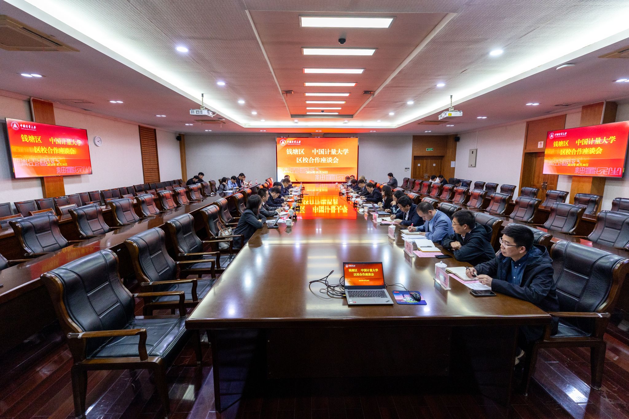 10月30日,钱塘新区党工委书记、区委书记金承涛,钱塘区委常委、钱塘科学城党工委书记周妙荣,钱塘区政府党组成员、副区长马于惠等一行来校调研。校党委书记徐江荣出席并主持座谈会。副校长王乐,钱塘区相关处室及我校有关部门负责人参加座谈会。