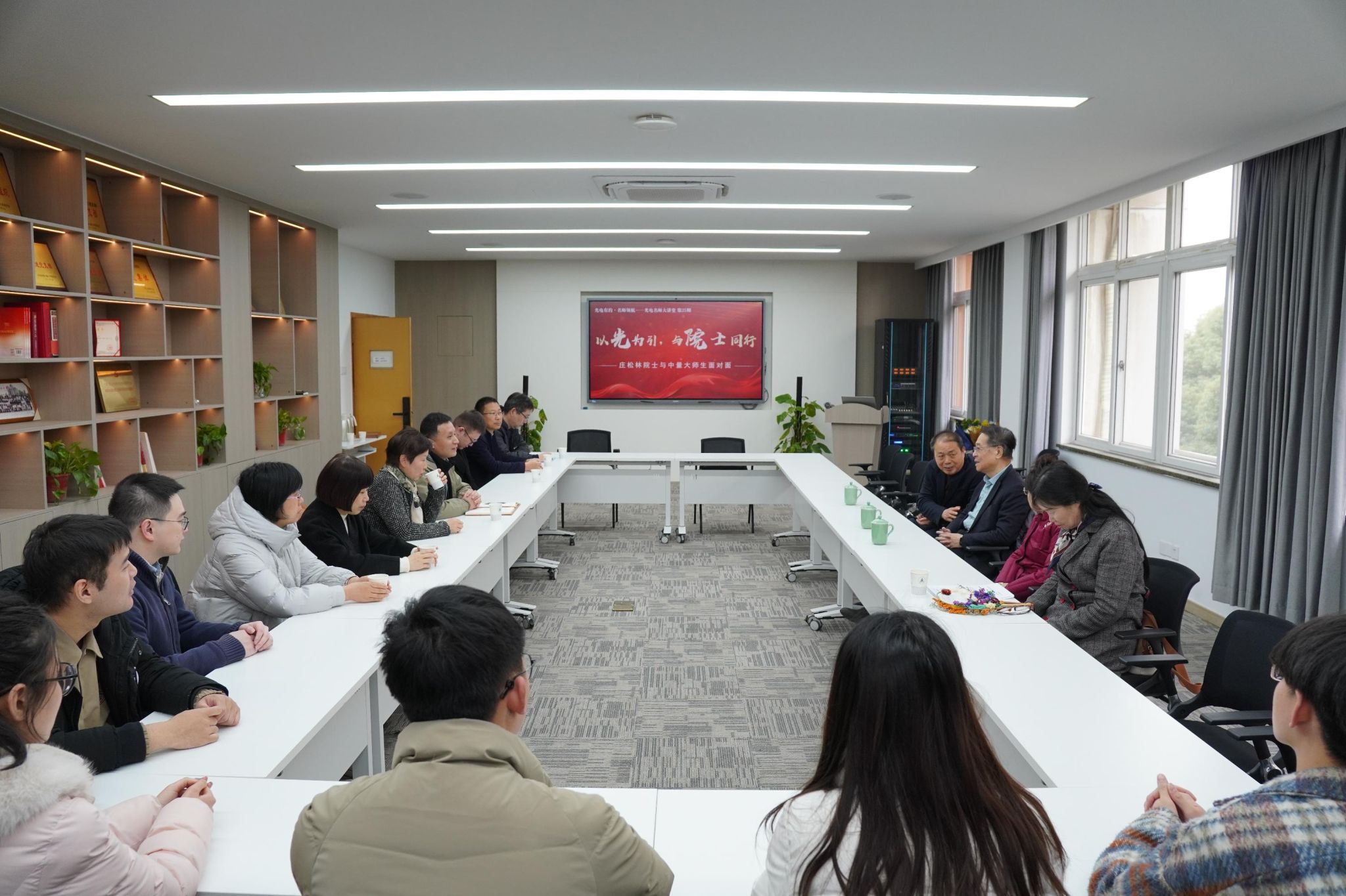 本次“以光为引,与院士同行”活动,是中国计量大学光电学院“光电有约·名师领航”党建特色品牌活动的重要篇章,也是学院构建“大思政”育人格局的又一次生动实践。自2023年创办以来,“光电有约·名师领航”光电名师大讲堂已成功邀请包括院士在内的25位光电领域高层次领军人才,通过“学术领航+价值引领”的模式为师生们提供学术引领和生涯指导,成为推进思政教育、学科发展、科技创新、人才培养的有效载体,更是学院坚守教育初心、弘扬科学家精神的创新手段。