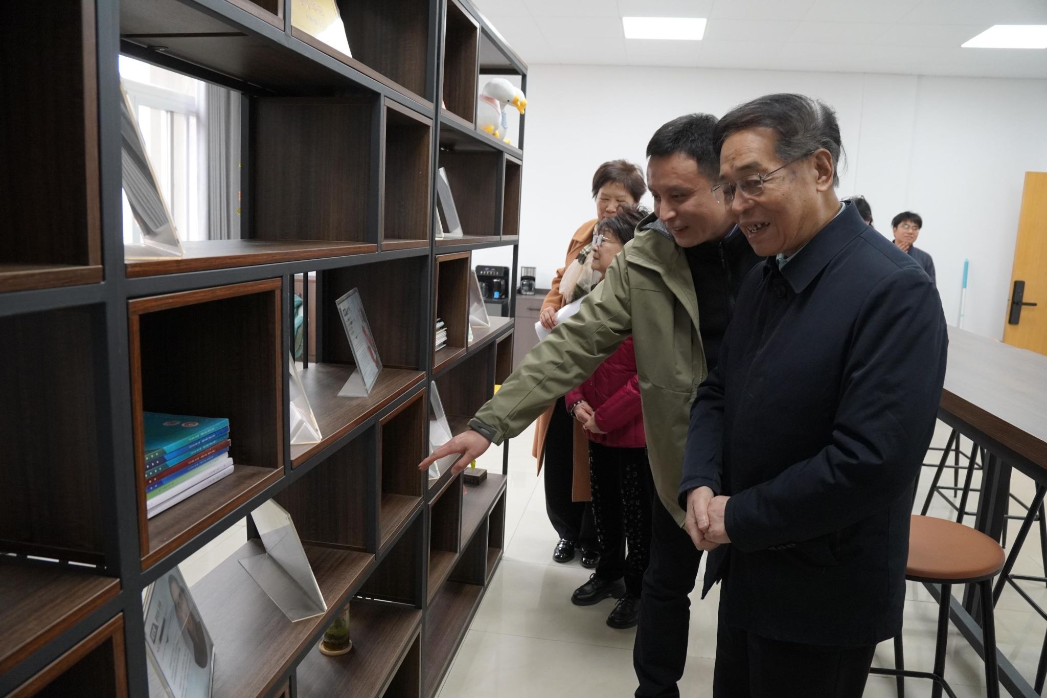 在参观学院人才之家时,庄院士仔细了解学院人才引进和培育情况,关注学院高层次人才和青年教师的工作进展与成果。他与学院浙江省高校黄大年式教师团队深入交谈,勉励老师们要坚守“计量”底色,擦亮“光电”特色,主动对接和服务国家战略需求,铆足干劲为学科建设和科研攻关贡献智慧和力量。